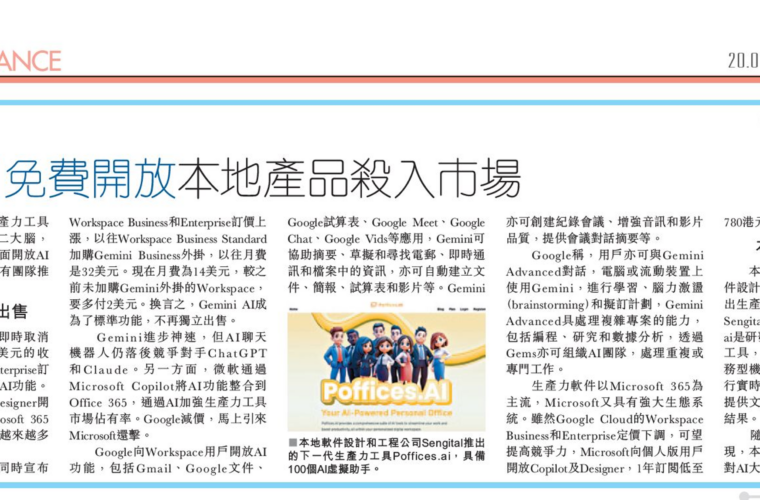 Poffices.ai featured in Sing Tao Daily: Revolutionizing Productivity with AI (數碼轉型: 大廠AI免費開放 本地產品殺入市場)